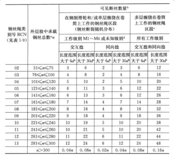 d)可將以上所列斷絲數(shù)的兩倍數(shù)值用于已知其工作級別為M5-M8的機構(gòu);參見GB/T 24811.1—2009.
