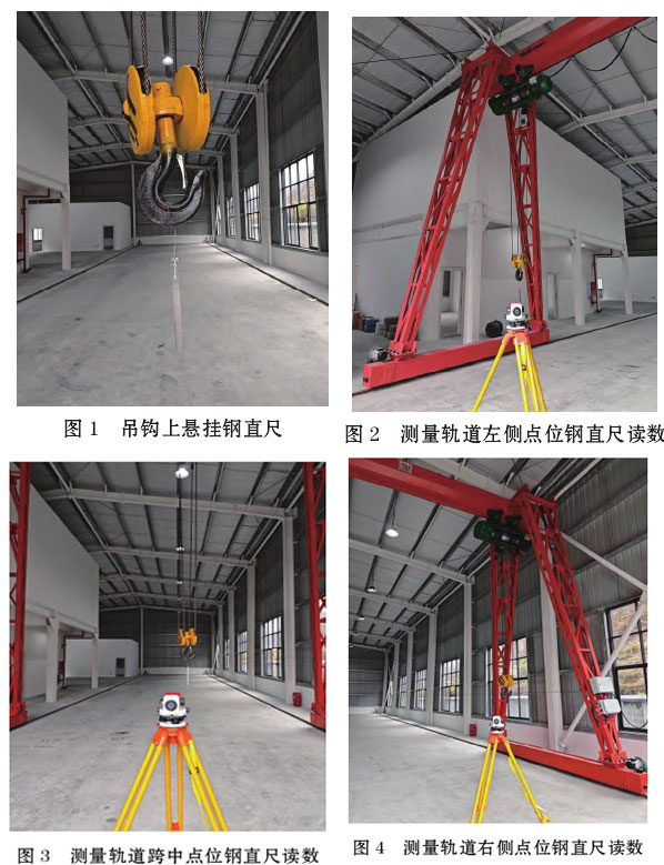 (2)將電動葫蘆運行至軌道跨中(圖3),待鋼直尺靜止后,調(diào)整水準儀目鏡,讀出目鏡中鋼直尺的刻度S2。