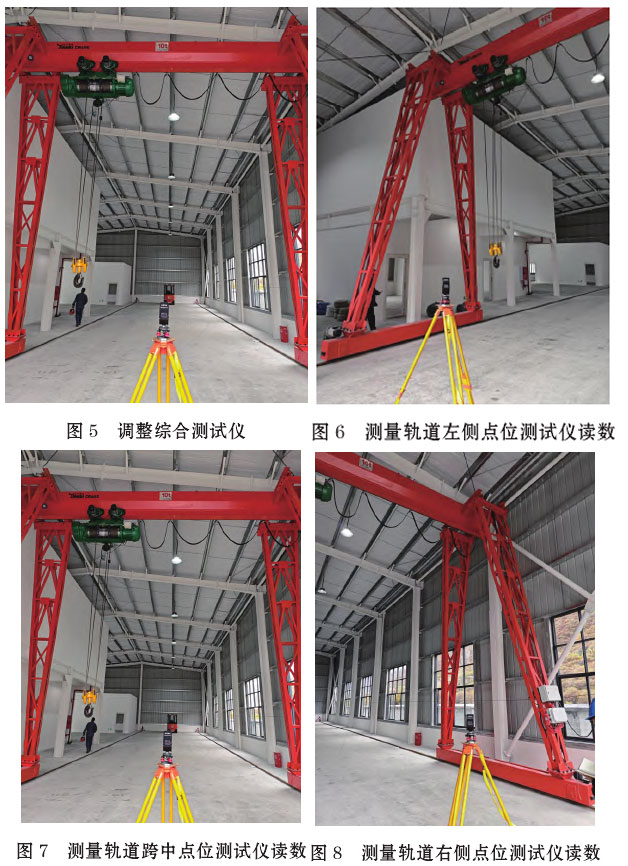 司,該設(shè)備于2023年5月19日校準,設(shè)備正常。面對主梁,放置綜合測試儀,調(diào)整水平(圖5)。將電動葫蘆運行至左側(cè)接近支腿處,露出軌道端部便于后續(xù)測量。