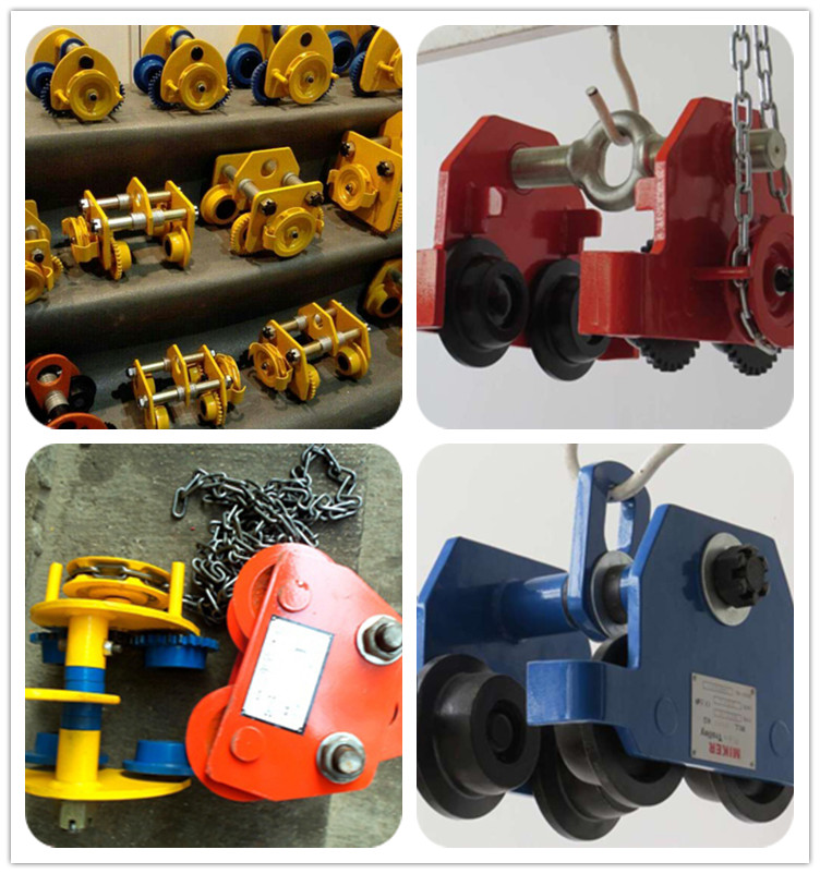 手動單軌小車可懸掛在各式小型吊車或安裝在固定的工字鋼上,配以手拉葫蘆組成完整的起重機械。對于工作效率要求不高的倉庫,車間和電站,可作為安裝,檢修設備或吊運重物之用。