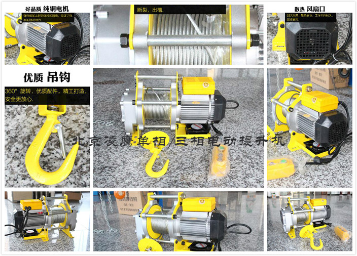 此款鋁殼多功能電動提升機可做單相電提升機也可做三相電提升機